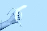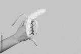Banana as a symbol of male penis in hand on a yellow background hidden by censorship. Sexual masturbation and orgasm, impotence problem. Self-pleasure concept.