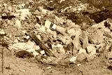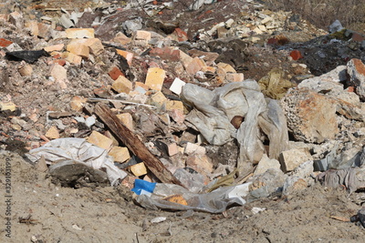 Construction waste with elements of and destroyed old structures at municipal landfill
