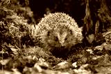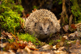 Hedgehog, wild, native, free roaming hedgehog, taken from a wildlife garden hide to monitor health and population of this favourite but declining mammal, space for copy