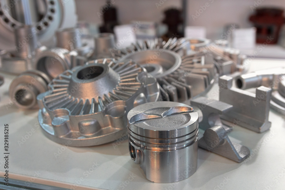 Metal products made by casting techniques closeup. Industry