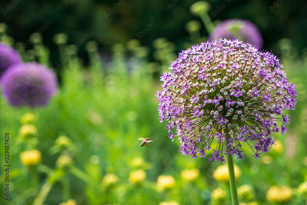 Schwebefliege im Anflug auf ein lila Riesen-Allium