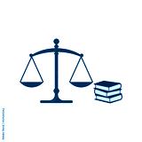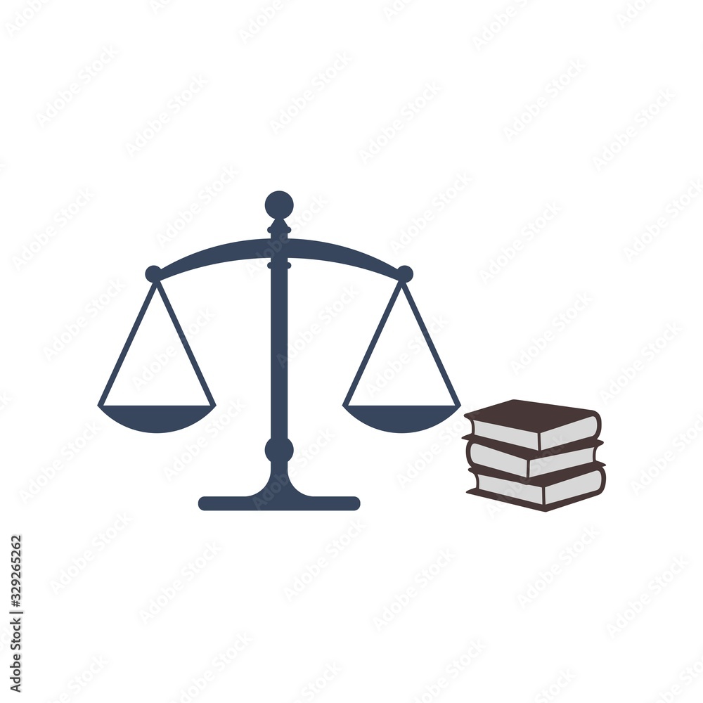 Law code books, justice scales and books icon isolated on white background