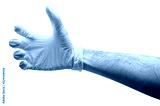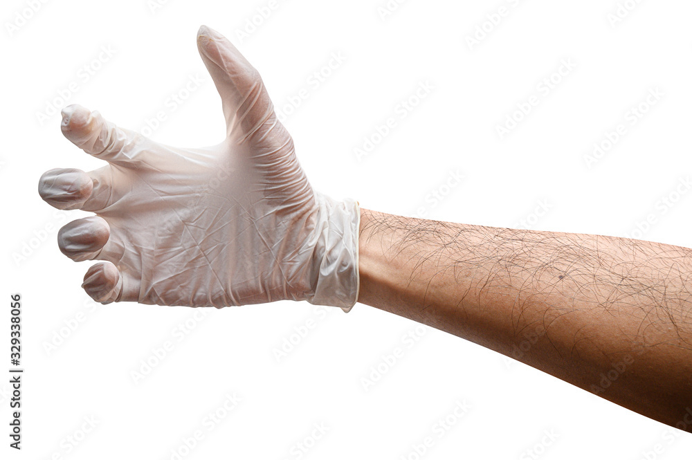 Doctor hand holding something like a bottle or can isolated.