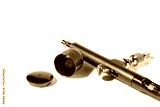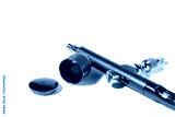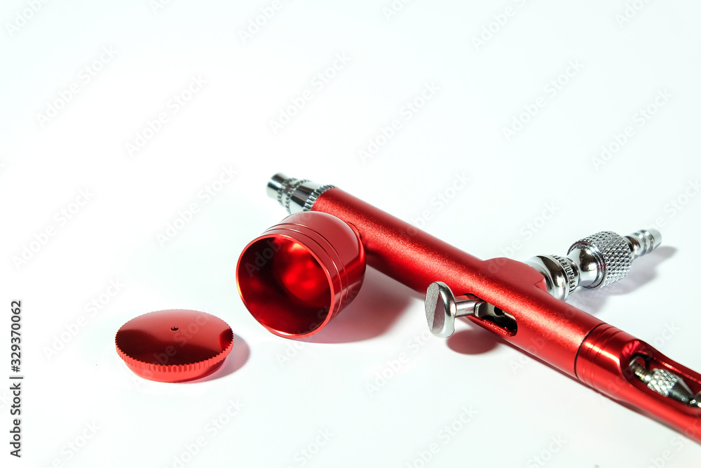 Red airbrush spray tool for paintingg hobby or work for art .