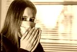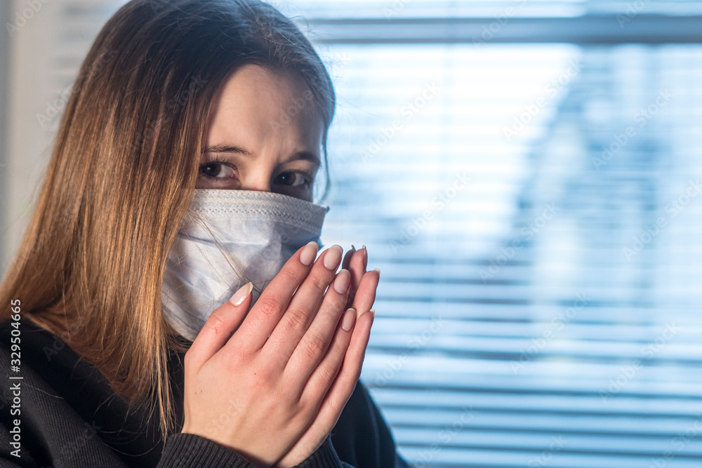 Prevent the spread of the Coronavirus Disease 2019 (COVID-19). Young woman looking at the camera sneezing or coughing in a protective medical face mask