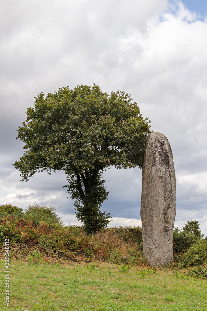 Menhir of Kergornec - megalithic monument in Brittany, France