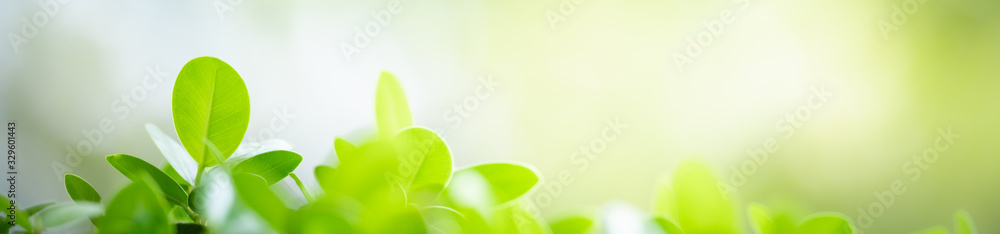 Nature of green leaf in garden at summer. Natural green leaves plants using as spring background cover page greenery environment ecology wallpaper