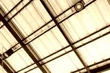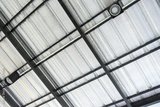 Close up of LED bulb in the lamp mounted under the roof.
