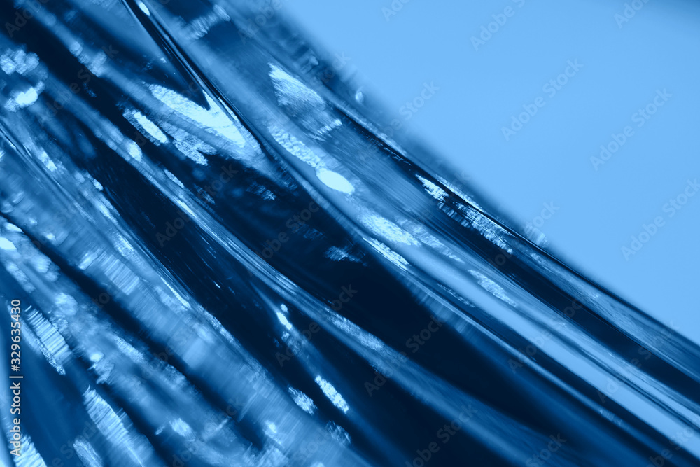 Abstract blurred soft focused futuristic dark blue glass wavy background. 2020 trend color concept