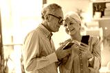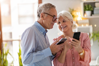 Senior couple looking at a smartphone together at home