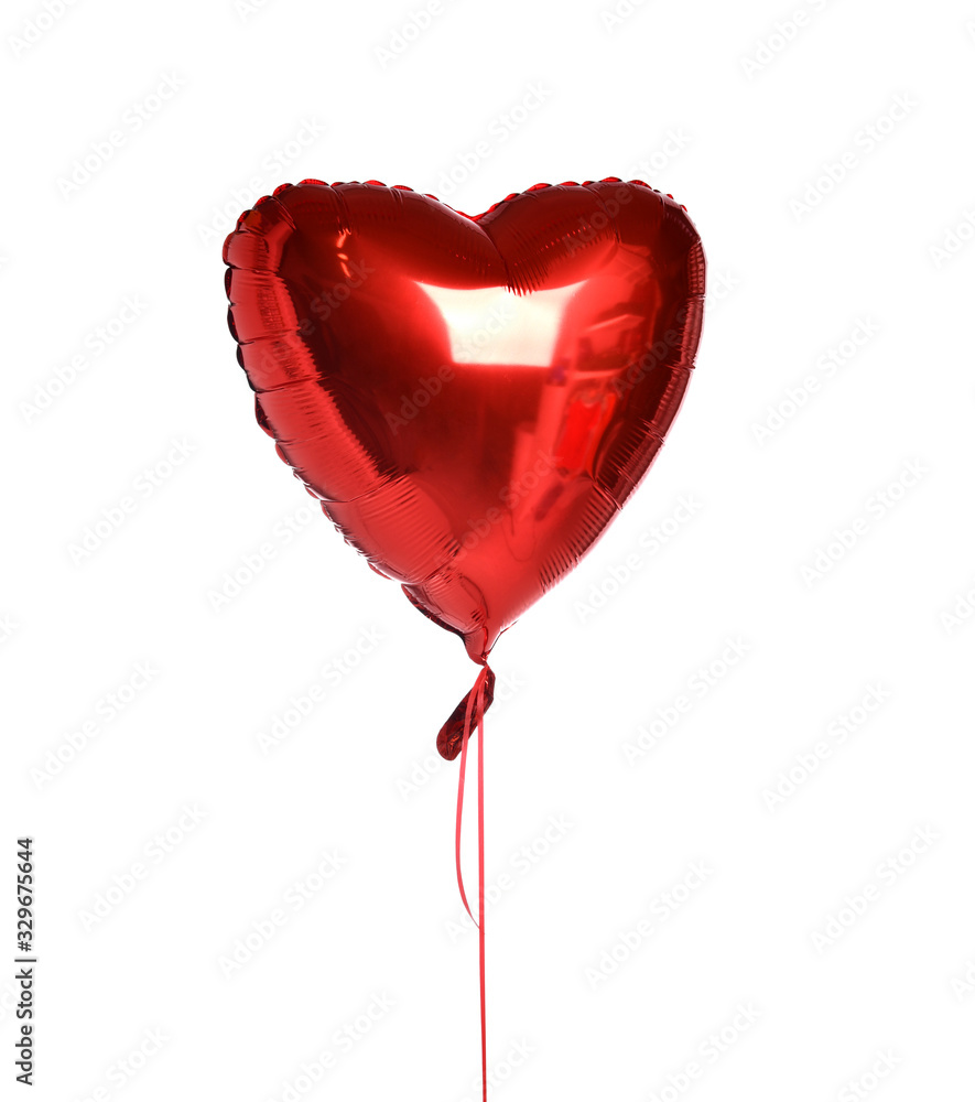 Single red heart balloon object for birthday party or valentines day isolated on a white