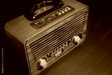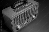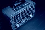 Retro old radio receiver on black background