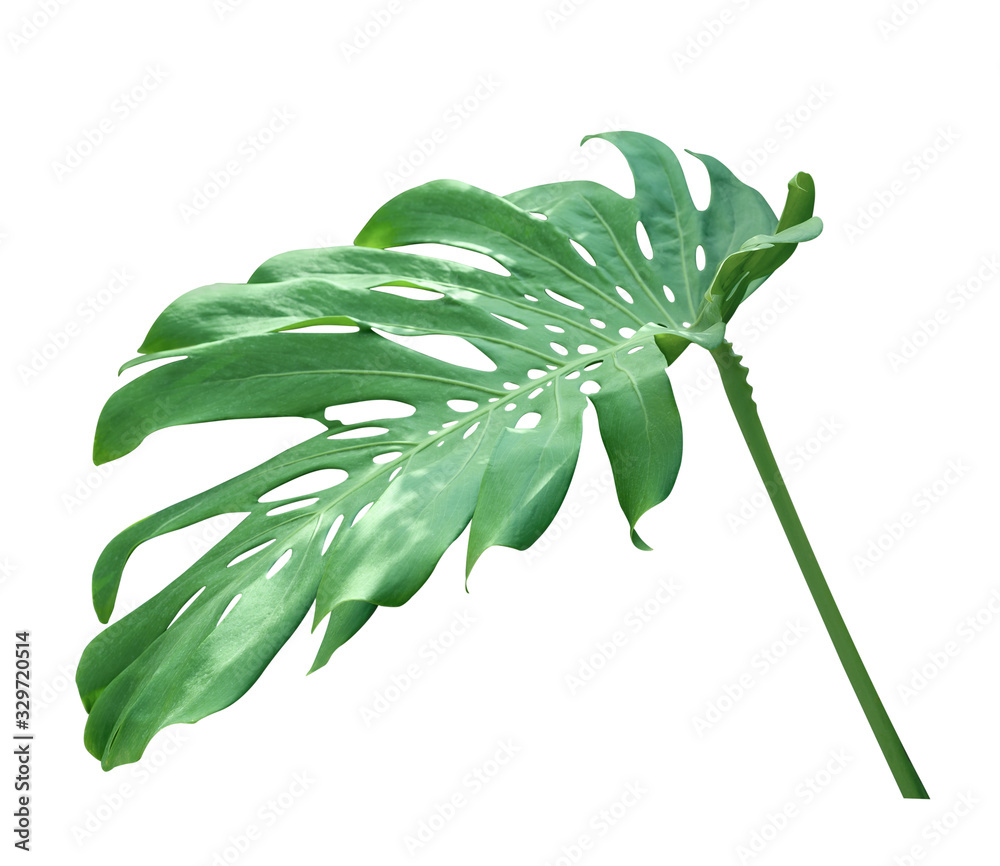 Tropical Green Monstera leaves isolated isolated on white background with clipping path.