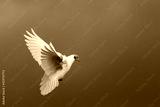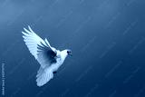 white dove flies on a gloomy sky