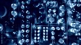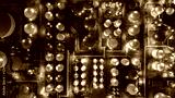 Aerial top view storage tank farm at night, Tank farm storage chemical petroleum petrochemical refinery product at oil terminal, Business commercial trade fuel and energy transport by tanker vessel.