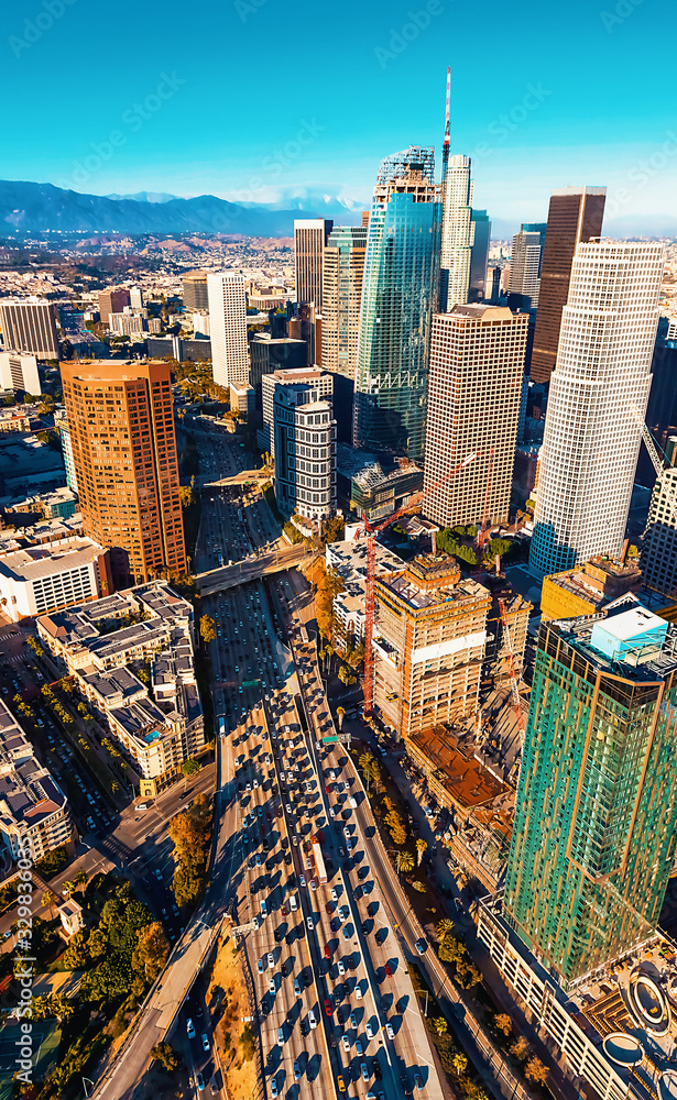 Aerial view of a Downtown Los Angeles