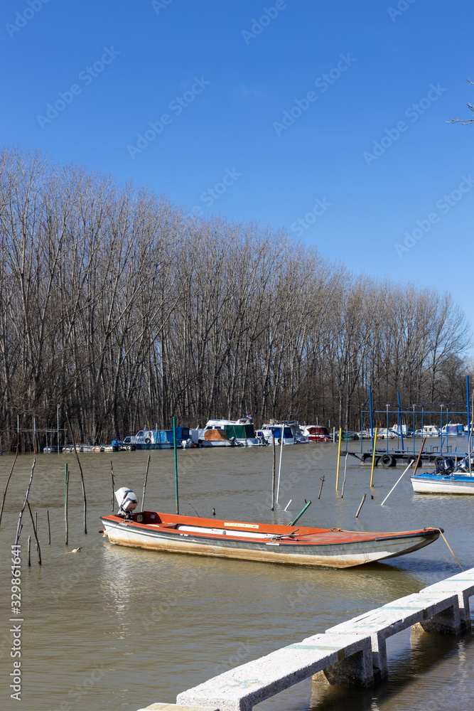Fishing boats on the river side on a beautiful sunny day