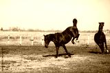 Herd of beautiful horses that ride in nature