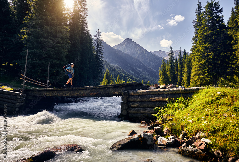 Hiker in the mountains of Kyrgyzstan