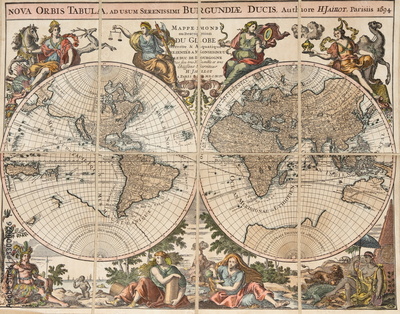 antique map of the world: "Nova orbis tabula". H. Jaillot 1694