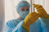 Woman doctor in protective clothing and a mask in the laboratory. Medicine