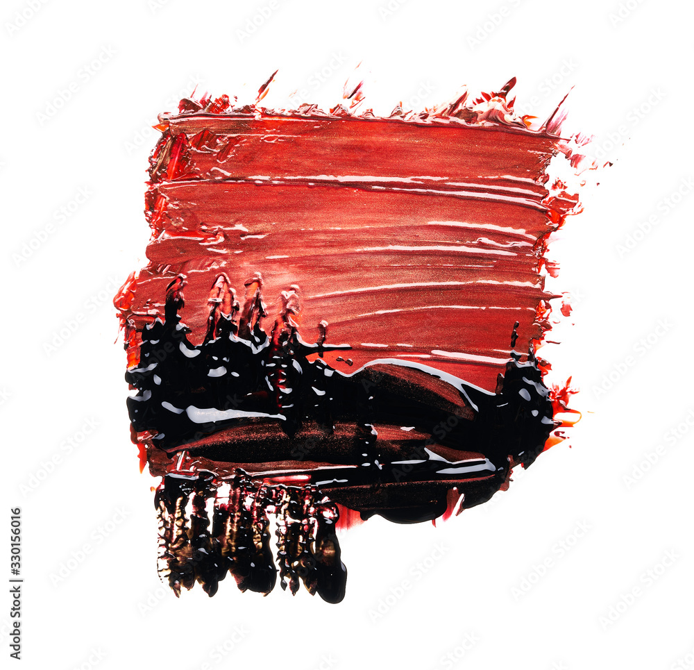 Texture and strokes of multicolored acrylic paint with sparkles on a white background