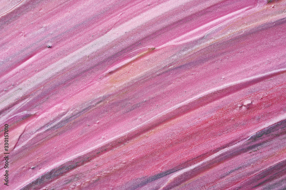 Texture and strokes of multicolored acrylic paint with sparkles on a white background