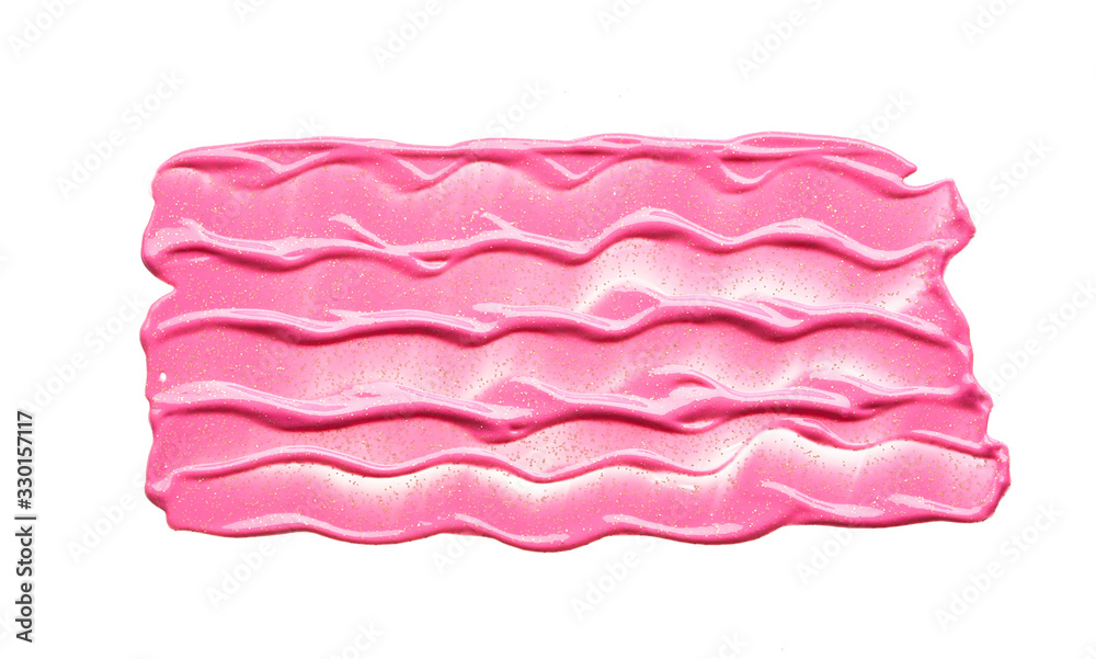 Gently pink strokes and texture of lip gloss or acrylic paint isolated on white background