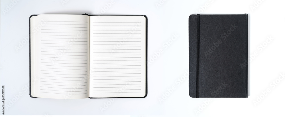 black notebook on white background with clipping path