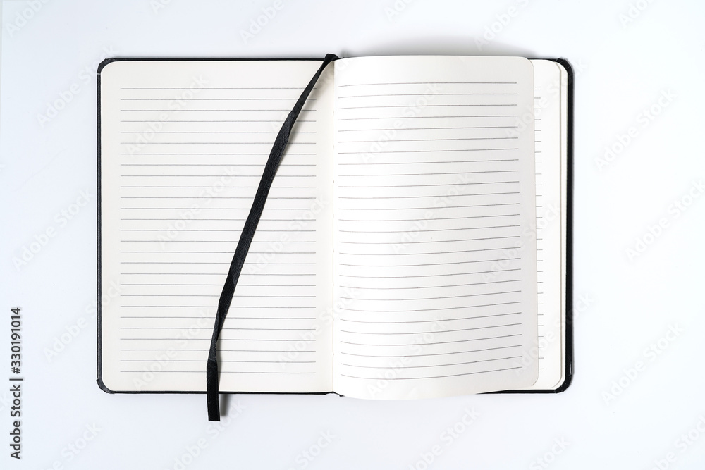 black notebook on white background with clipping path