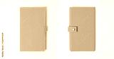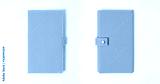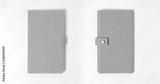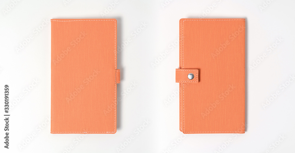 top view blank orange leather diary on white desk