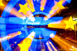 Das Eurosymbol in Frankfurt bei Nacht mit Zommeffekt