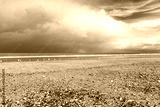 Gulls on a Normandy beach at low tide - France