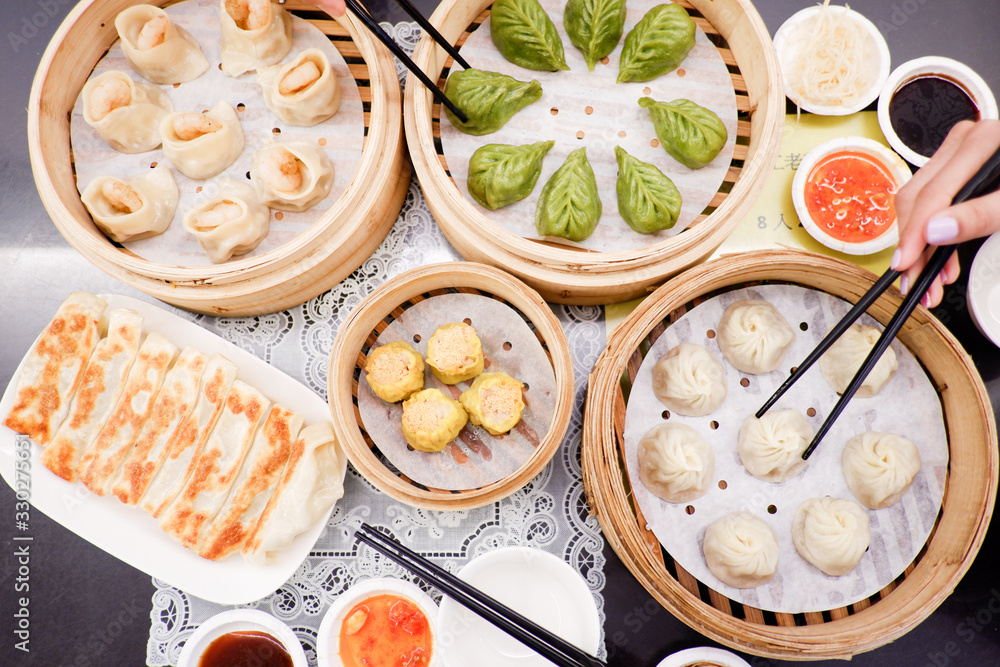 Dim Sum and Xiao long bao in the steam basket