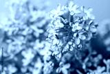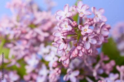 Beautiful Branches of Purple Lilac. Violet flowers on blue background. Selective focus