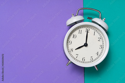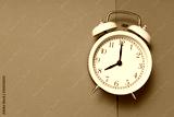 Retro alarm clock on colorful table, vintage style and lifestyle concept