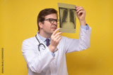 Male doctor checking xray image of lungs focus on the xray image suspecting pneumonia