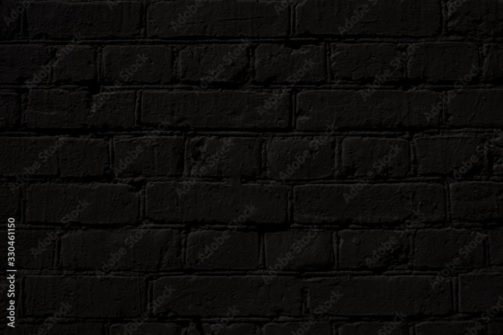 Abstract black background. Black bricks texture. Dark rough wall surface.