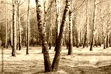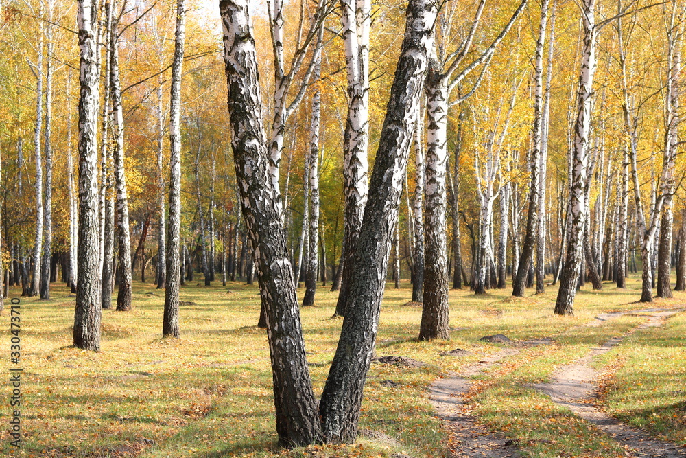 beautiful scene with birches in yellow autumn birch forest in october among other birches in birch grove
