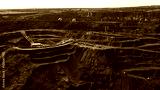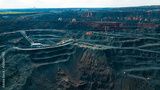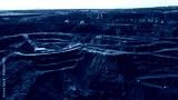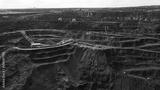 Aerial view of the Iron ore mining, Panorama of an open-cast mine extracting iron ore, preparing for blasting in a quarry mining iron ore, Explosive works on open pit