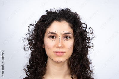 Facial lifting cosmetic face shape surgery preliminary simulation dotted lines
