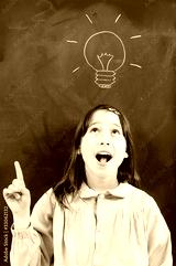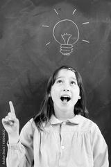 girl with blackboard and lightbulb over her head