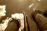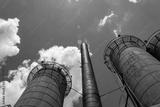 Sloss Furnaces National Historic Landmark, Birmingham Alabama USA, rusted blast furnaces and smoke stack against a blue sky with clouds, old industrial site, horizontal aspect