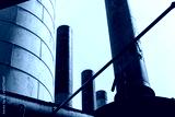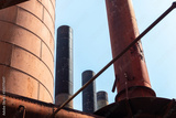 Sloss Furnaces National Historic Landmark, Birmingham Alabama USA, series of smokestacks and furnace of old abandoned steel mill manufacturing, horizontal aspect