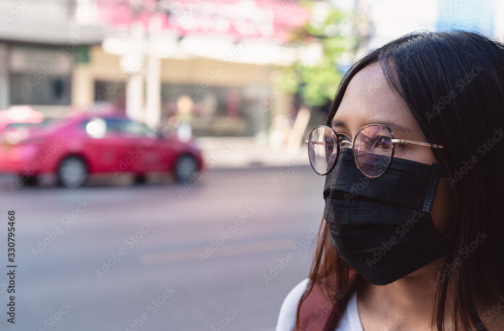Young diverse Asian girl wearing surgical face mask to protect infectious corona virus - Millennial woman using medical facial protection to prevent pollution and spread of contagious Covid-19 disease
