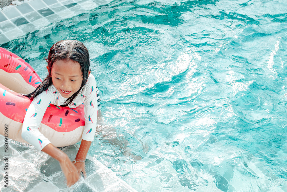 Holiday, vacation concept, Children swimming in the pool are very fun.