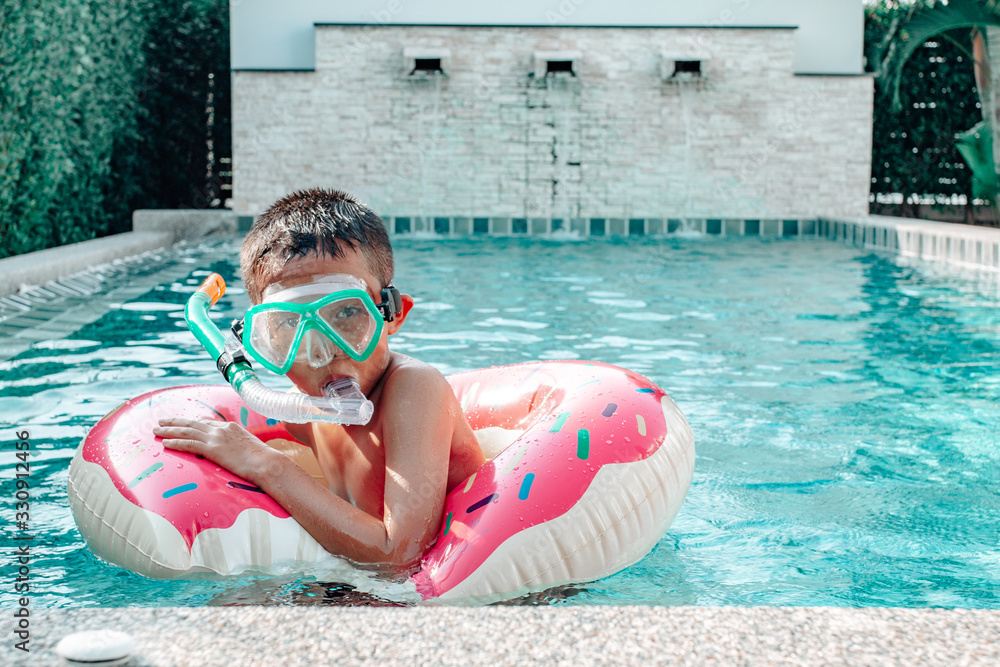 Holiday, vacation concept, Children swimming in the pool are very fun.