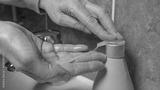 CLOSE UP: Woman washing pours liquid soap into her palm to disinfect her hands