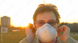 PORTRAIT, DOF: Woman puts on a facemask during the covid-19 outbreak in Italy.