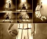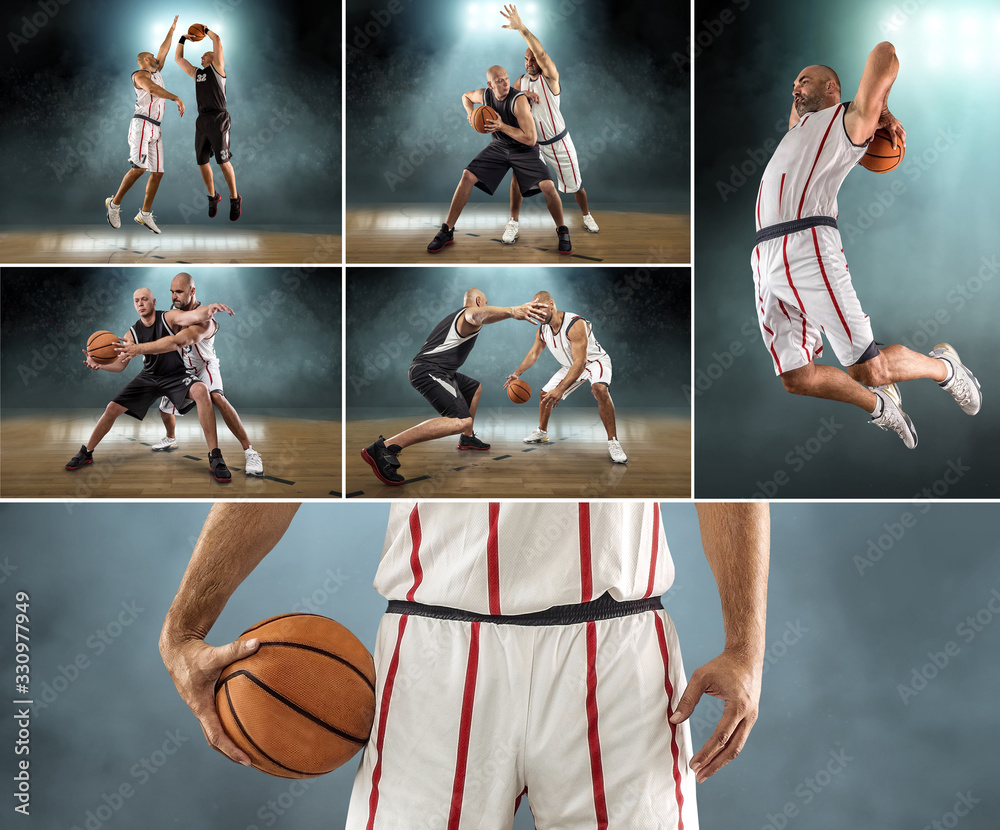 Caucasian Basketball Player in dynamic action with ball